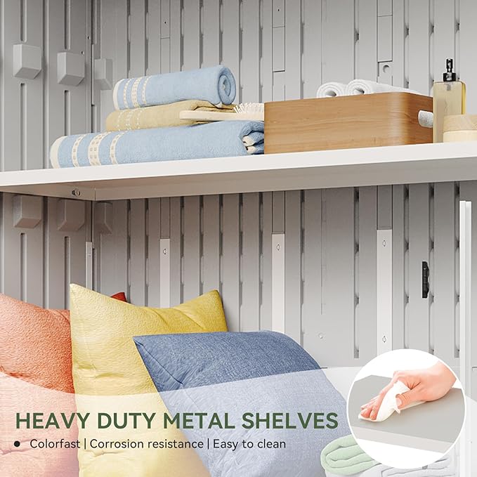 • 【Widened Anti-toppling Bottom Design】Our storage shed bottom has a widened design to effectively enhance stability and prevent toppling due to unstable center of gravity. Even on uneven ground, it can remain stable. The specially designed top and bottom door suction system effectively prevents the door from accidentally closing or opening, ensuring the stability and safety of the tool room during use. Even if it is opened and closed frequently, the structure can be maintained for a long time.