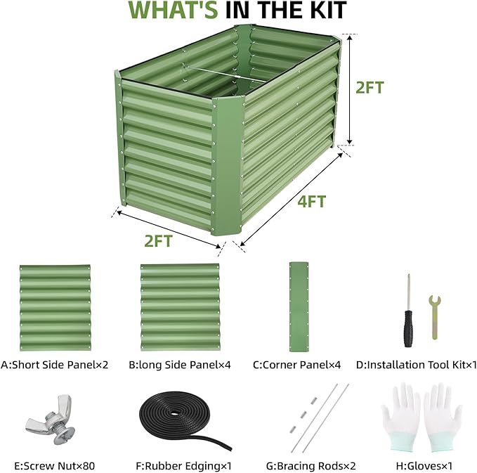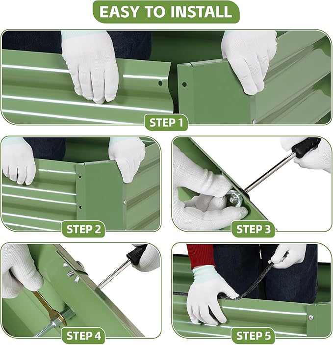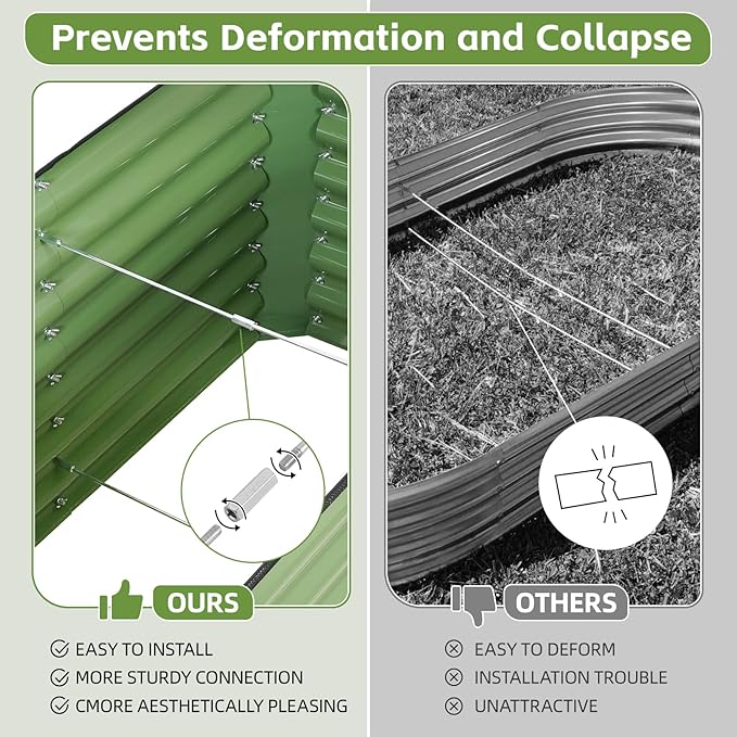 • 【 Superior Durability 】Made of 0.7mm thick zinc-coated steel with spray coating, our raised garden bed resists rust, corrosion, and deformation for 5x longer lifespan than thin competitors. Dual-folded edges ensure galvanized garden bed structural stability even in harsh weather.