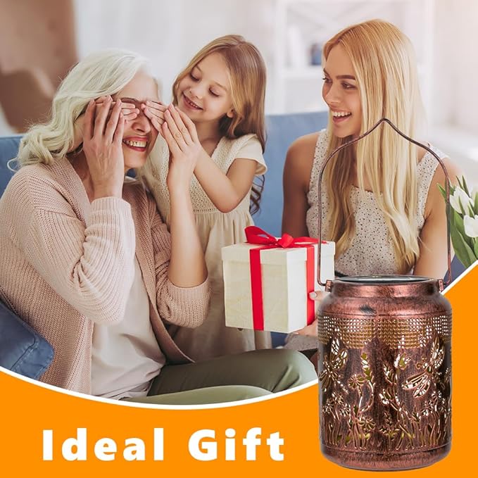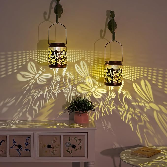 • GARDENING GIFT:This solar lanterns outdoor waterproof dragonfly dances around the flowers,and the light is projected on the table or ground to create a lifelike beautiful pattern,making your patio stand out.This dragonfly hanging solar lantern is perfect for Father's Day,Thanksgiving,Christmas,Birthdays and Mother's Day gift for mothers,grandma