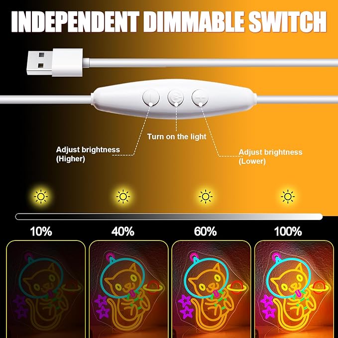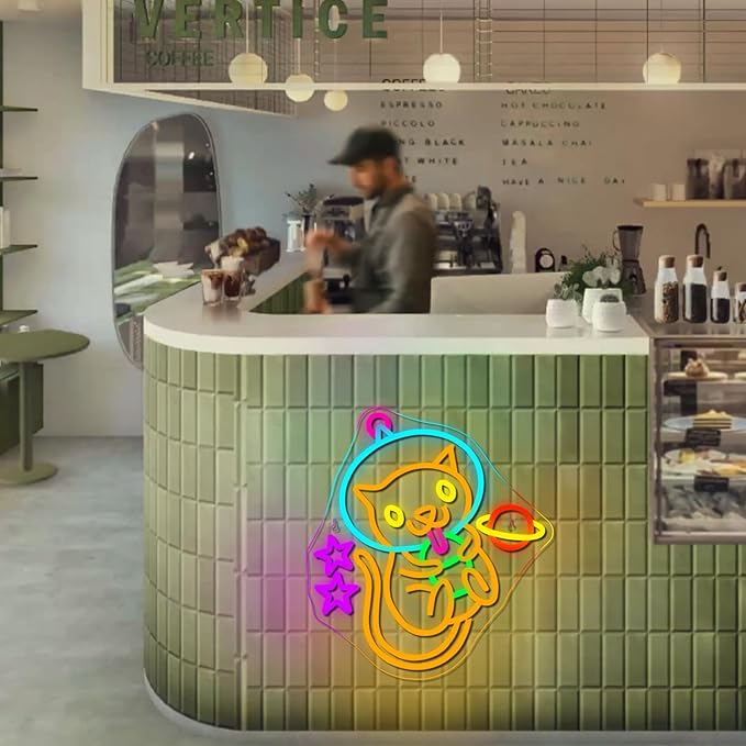 • Vivid Color Display: The cat bubble tea neon light illuminates in a beautiful mix of colors, including soft pastels and bright tones, making it an eye-catching piece that adds a lively, cheerful ambiance to bedrooms, living rooms, cafés, or even bubble tea shops.