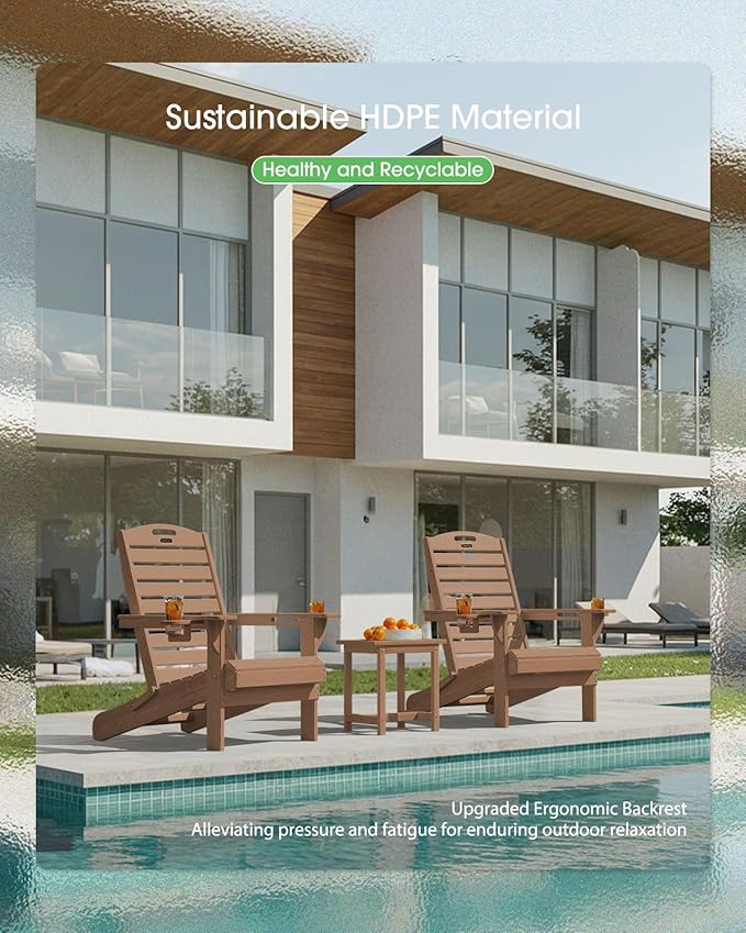 • Enhanced Backrest Design: We’ve upgraded our adirondack chairs to a one-piece backrest that outperforms traditional straight designs. This innovative shape contours perfectly to your back, alleviating spinal pressure and fatigue for enduring comfort