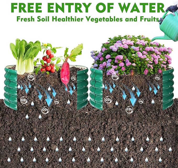 • Materials and Construction: The raised garden bed kit is constructed with sturdy metal 0.8mm thick, providing a reliable framework for your garden.The round-shaped design adds a unique aesthetic,and the 17" height provides ample depth for plants