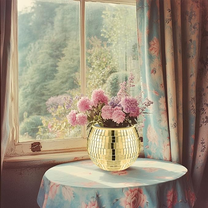 • Captivating Light Play: Each disco ball vase features a mesmerizing surface adorned with reflective mirror pieces that beautifully capture and refract light. This captivating effect creates an eye-catching focal point, even in dim lighting, making any room feel festive and lively.