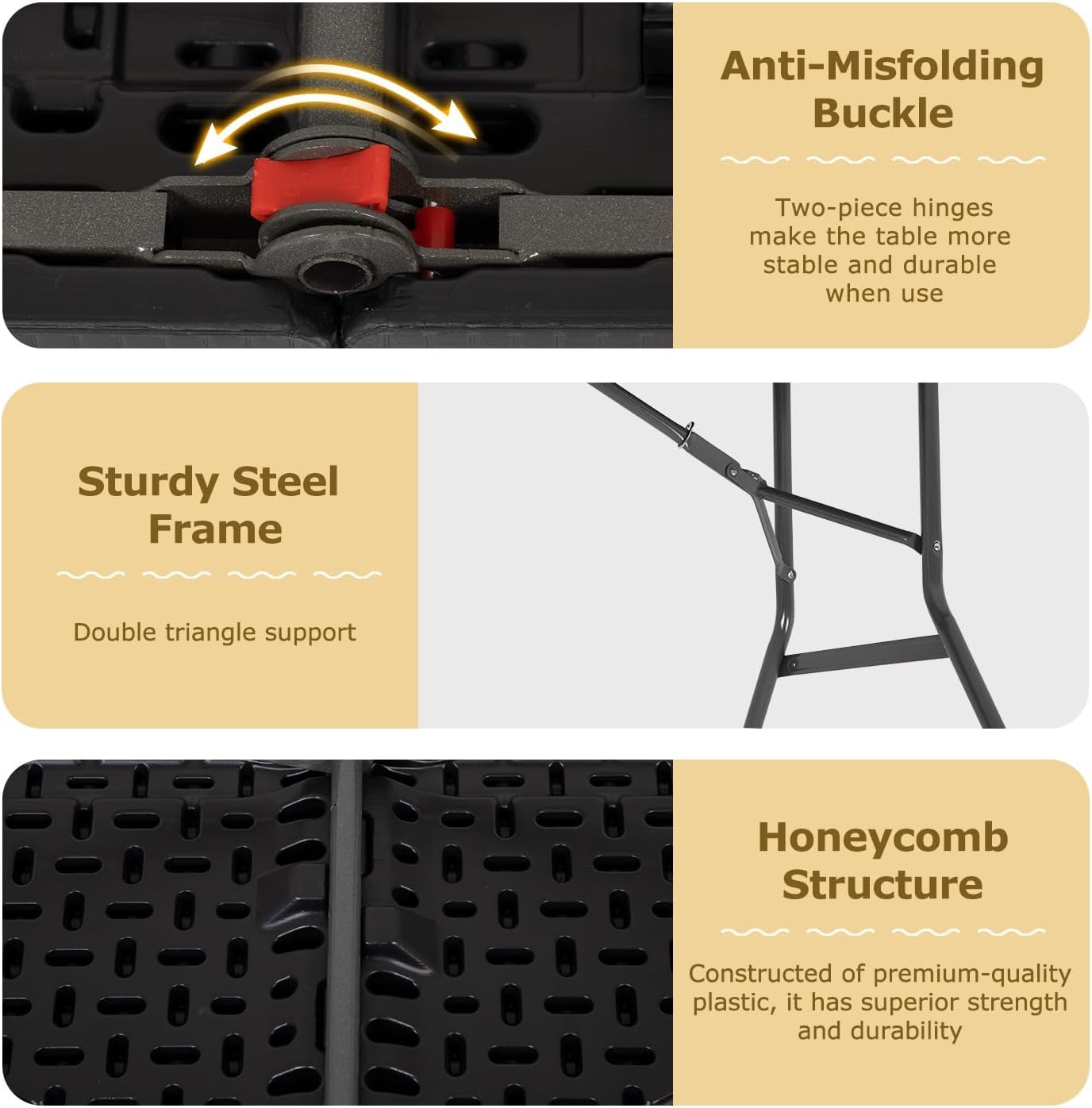 • 【Convenient And Easy To Store】The party table is easy to use and includes side locks and handles to make the camping table easy to carry when you are out and about and to store in a compact space when you are not using the plastic table.