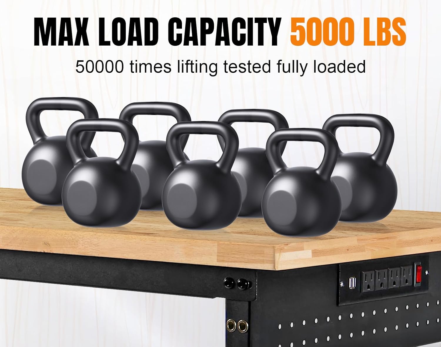 • ETL-CERTIFIED POWER OUTLET: The workbench comes with an ETL-certified power outlet with switch, 4 AC outlets, 2 USB ports, and a 9.8-inch cord to safely power tools and charge equipment at the same time. You save money by not having to purchase additional outlets.