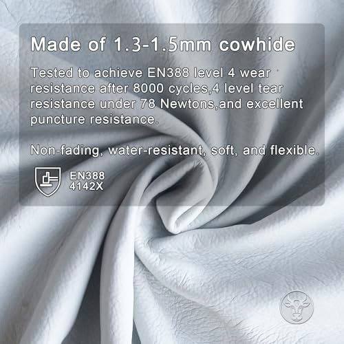 • Excellent leather material: These work gloves are made of 100% thick cowhide leather, thickness 1.3-1.5mm. They are soft, flexible, and have no irritating odor, making them ideal as durable working gloves for various tasks.