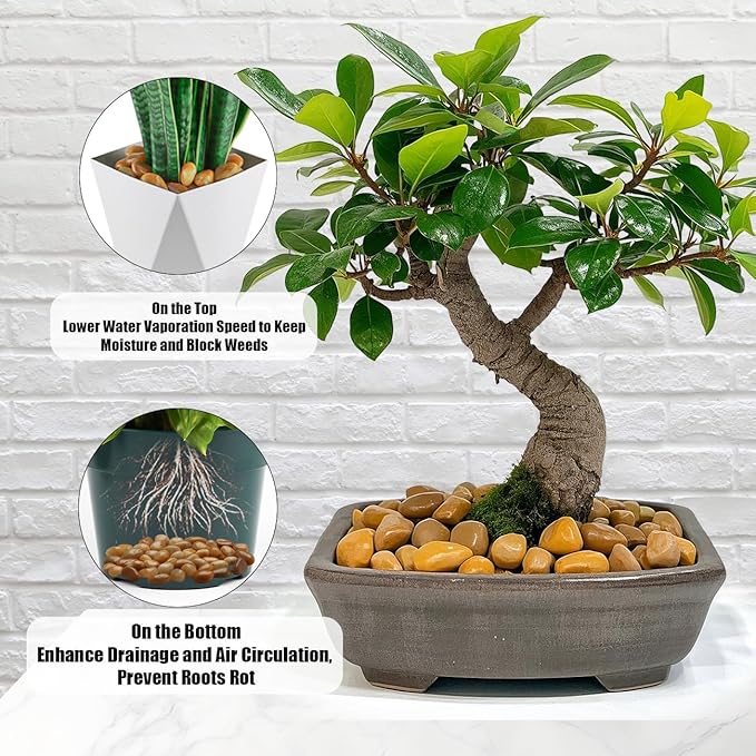 • Benefits For Plants: Pebble tray for plant humidity. These small pebbles for indoor plant keep soil moisture and protect soil from weeds, being dug up by house pets
