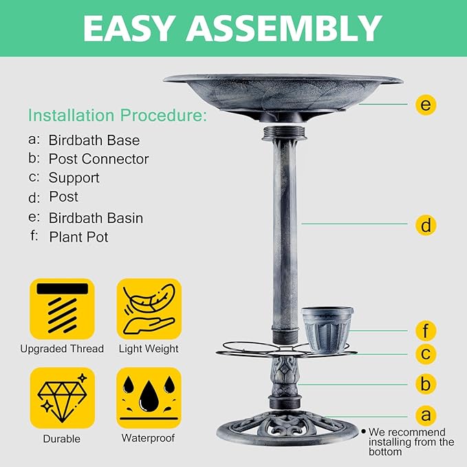 • VINTAGE and ATTRACTIVE DESIGN: With an intimate European royal style and pure handmade retro coloring makes every birdbath is unique. Decorate your garden with our vintage bird baths to attract a wide variety of birds to your backyard