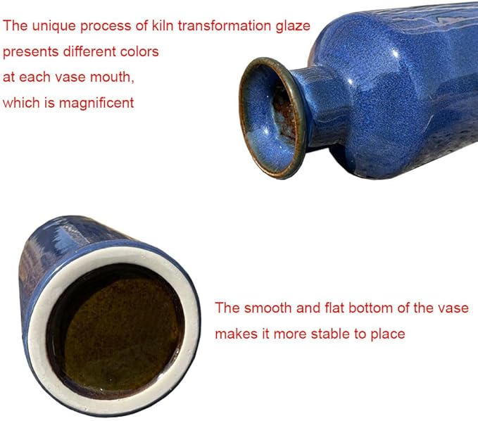 • Advantages: This vase uses kiln enamel technology, and each one has a unique and exquisite pattern, which is very beautiful bright glaze color(Blue),you can use it on its own as a beautiful piece, or add faux flowers, stems, bouquets and greens for a pop of color. Office Use, Living Room Decoration, Fireplace, Bathroom, Laundry Room, Coffee Table, Restaurant, Shops, Ideal Book Shelf Decor, Flower Arrangement Decoration ShootingProps, Ceramic Simple Vase, Modern Farmhouse Decor, Wonderful table centerpieces for Wedding, Graduation, Party.