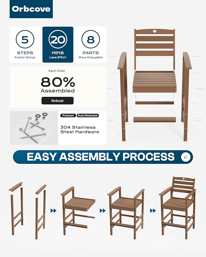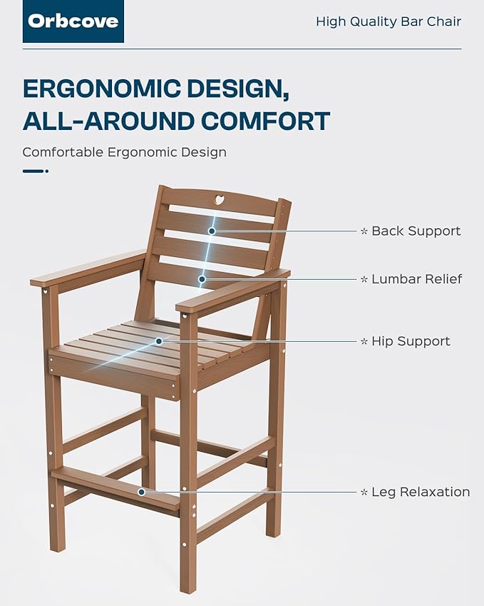 • Durable All-Weather Design: (Please note!!!Your order consists of two or three separate packages, which may be delivered at different times.) Crafted from HDPE with a natural wood grain finish, Orbcove bar table and chairs set withstands sun, rain, and wind without fading or cracking. Ideal for deck furniture, backyard furniture, or porch furniture, it’s perfect for year-round outdoor living.
