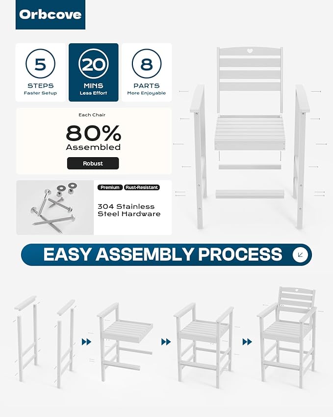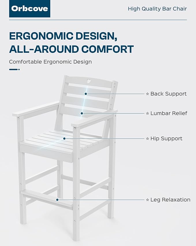 • Durable All-Weather Design: (Please note!!!Your order consists of two or three separate packages, which may be delivered at different times.) Crafted from HDPE with a natural wood grain finish, Orbcove bar table and chairs set withstands sun, rain, and wind without fading or cracking. Ideal for deck furniture, backyard furniture, or porch furniture, it’s perfect for year-round outdoor living.