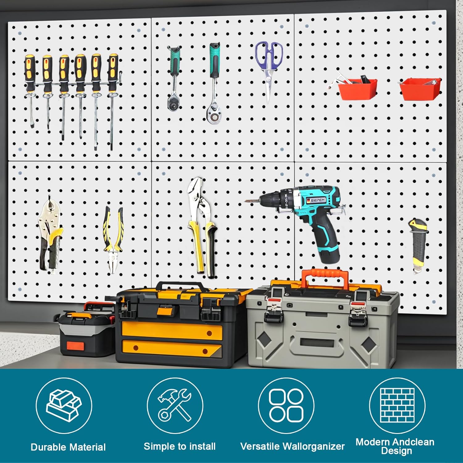 • 4.6 Pack of 12 inch by 12 inch pegboard, you can install them together or separately anywhere you want to install, making your storage more flexible and diverse, and life becomes more organized.