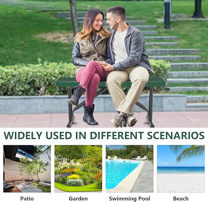 • Features: Available in different specifications, the spacious space can accommodate multiple people to sit comfortably together. The portable heavy-duty steel bench can be adapted to all seasons, suitable for different weather and occasions.
