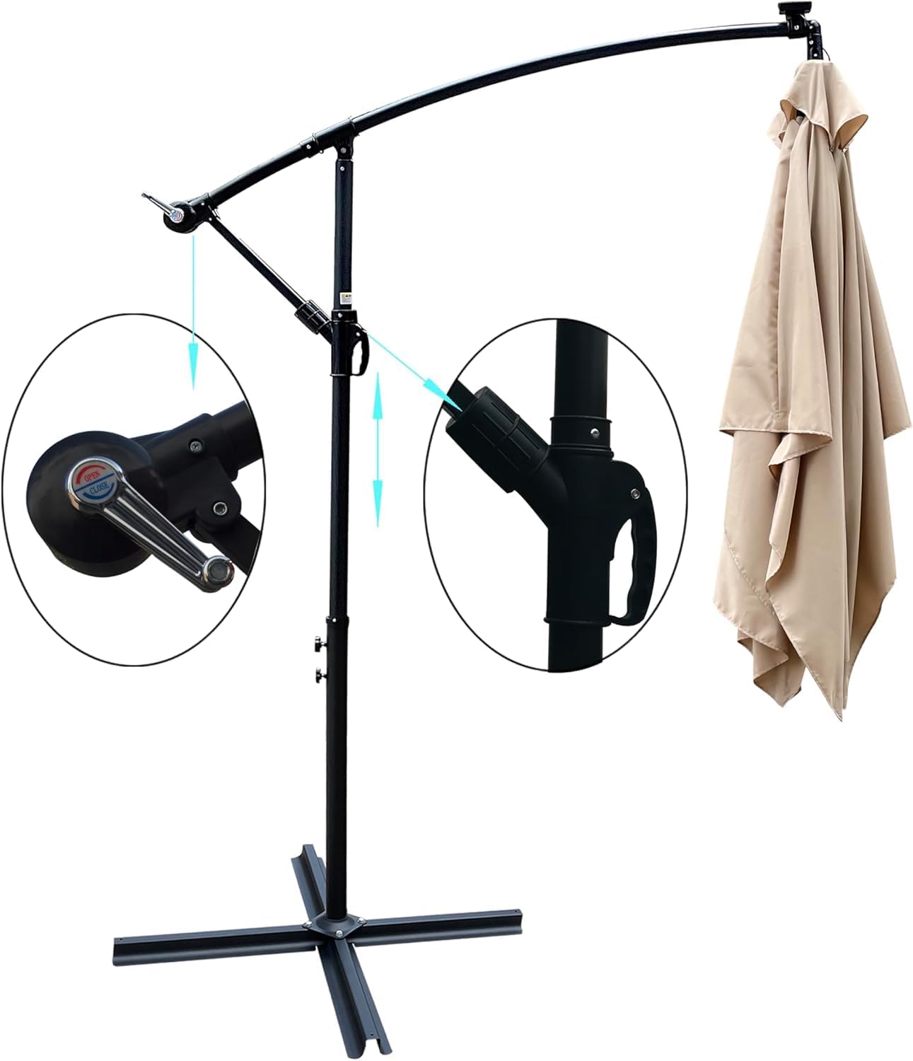 • ✅ HIGH DURABILITY: Crafted from 180G polyester fabric, this 10x6.5ft offset patio umbrella ensures fade resistance, waterproofing, UV protection, and easy cleaning. The 1.9" diameter rust-resistant pole, 6 sturdy steel ribs and cross base, with a powder-coated finish, can withstand winds up to 20 mph. The vented top design increases stability and keeps the area cool, making this cantilever umbrella ideal for long-term outdoor use.
