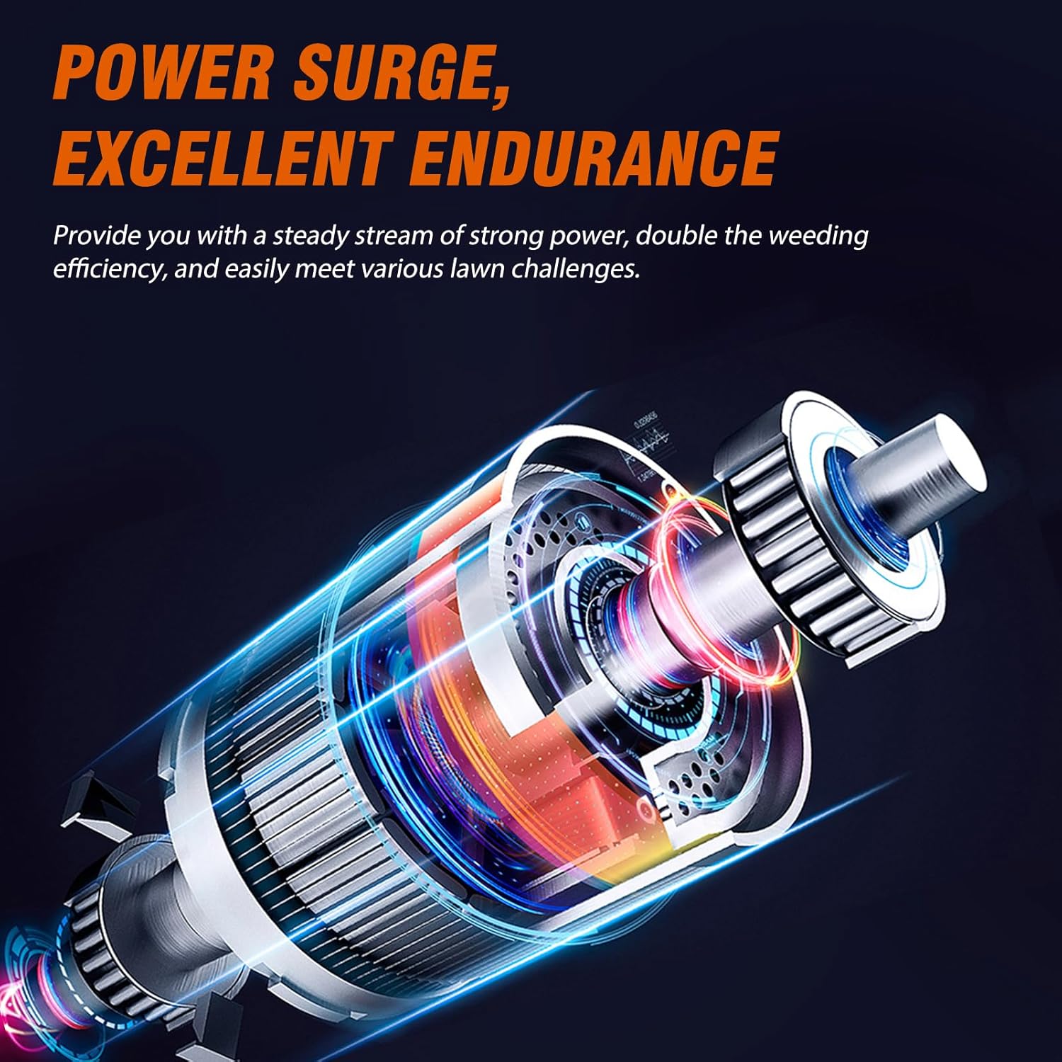 • Dual Battery Endurance: The cordless weed eater comes 2*21V 2000mAh batteries provide 2 hours runtime (1hr each), ideal for 1/2 acre lawn yards with quick-swap design