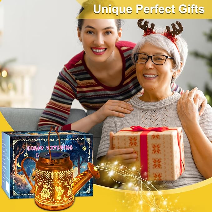 • Nighttime Garden Magic: This solar-powered watering can lantern creates a enchanting ambiance with its warm golden glow. The cascading string lights resemble a stream of sparkling stars, casting mesmerizing patterns on the ground. Perfect for transforming your garden, patio, or yard into a romantic retreat after dark.