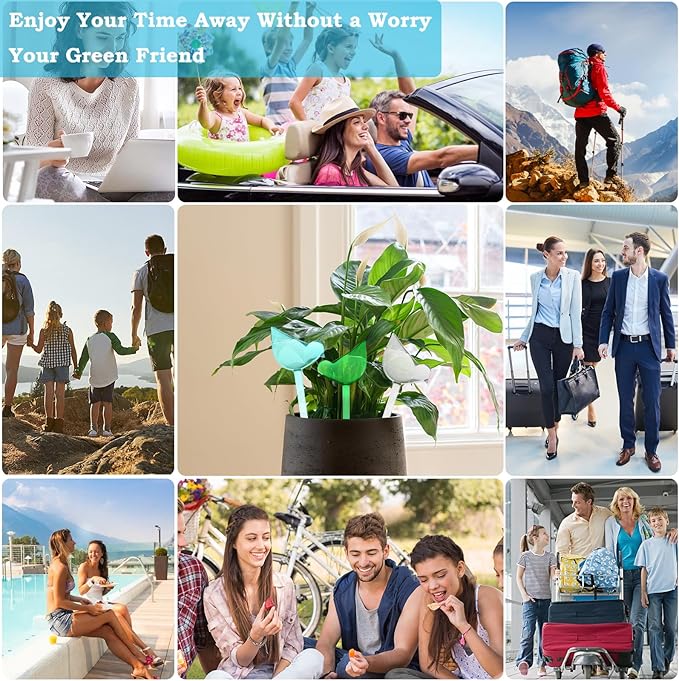 • 【Quality Material】Watering globes are made of high-quality durable PVC plastic material, you can clearly observe the amount of water inside, and it can be used for a long time. These self watering bulbs can keep your plants active while you travel.