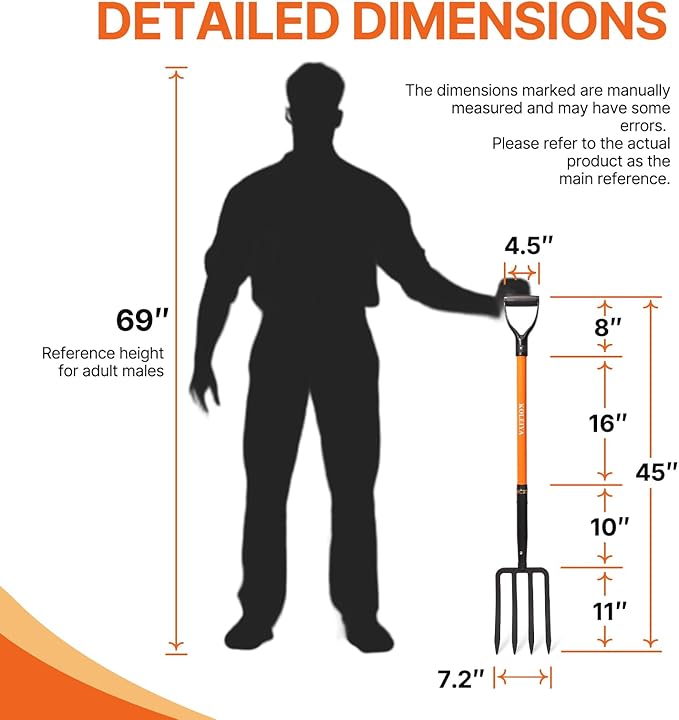 • 5.Reliable And Efficient: Built to last with forged steel tines and a 45-inch length for optimal leverage,making gardening tasks easier and more efficient.