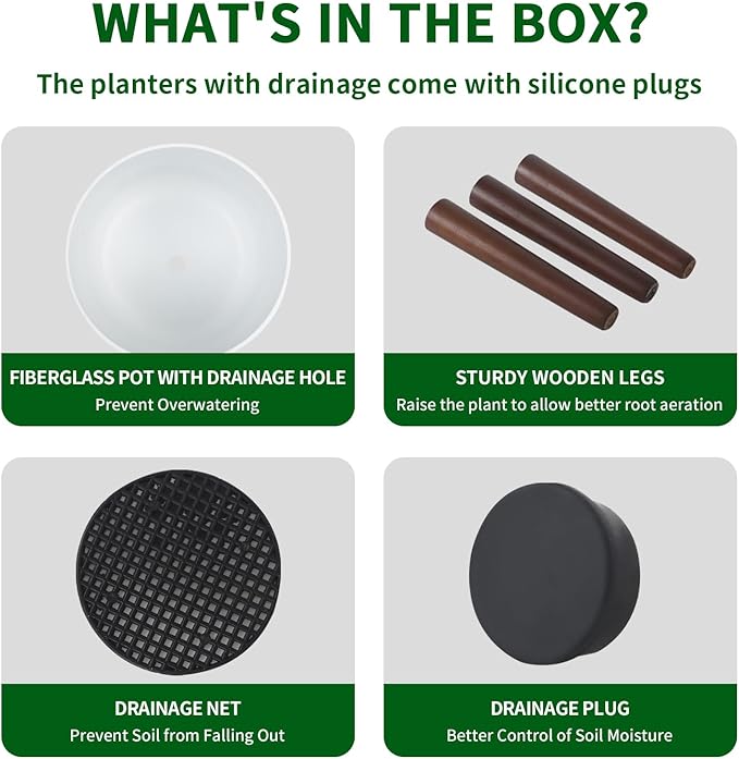 • Planter with Wooden Stand:Comes with a natural wood stand that elevates your plant and adds warmth to any space. Easy to assemble and stylishly functional.