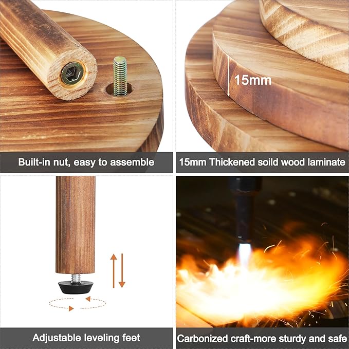 • 【Effortless Assembly & Premium Build:】Features embedded nuts and pre-drilled cylindrical legs for easy assembly within 10 minutes. The tiered plant stand uses Pine wood ,after high temperature carbonization, reduce the moisture in the wood, making the overall structure more durable,It is also equipped with non-slip adjustable foot pads to stabilize uneven floors. Ideal as a high low flower stand for balconies or living rooms