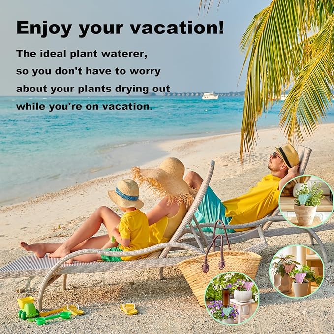 • Easy to use: Simply top-fill the reservoir and insert into soil. These plant self-watering devices provide consistent watering for up to 4 days standalone, or 7 to 10 days with a bottle attached, ideal for leaving for a trip