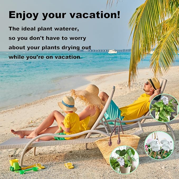 • Easy to use: Simply top-fill the reservoir and insert into soil. These plant self-watering devices provide consistent watering for up to 5 days standalone, or 7 to 10 days with a bottle attached, ideal for leaving for a trip