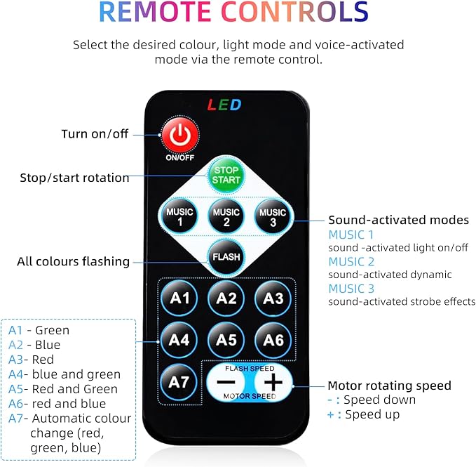 • Multifunctional New Year's Party Light: This New Year's Eve decorative light adds a wonderful magical charm to your party! It has 3 voice-activated modes, 7 light modes, rotating speed control function, you can easily switch between different light themes to create a colourful party atmosphere. It is an essential party decoration accessory.