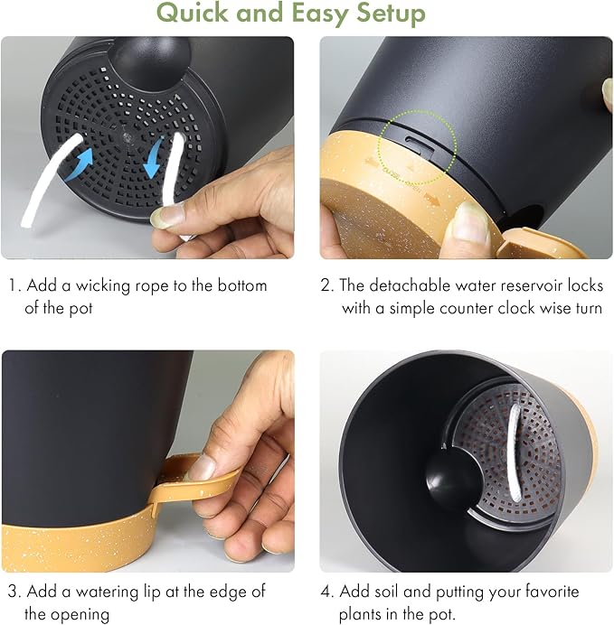 • 【Self-Watering Design】These self watering pots for indoor plants are designed with a wick rope that draws water from the reservoir at the bottom. The set of 6 plastic self watering planter provides an optimal air circulation system for plant roots