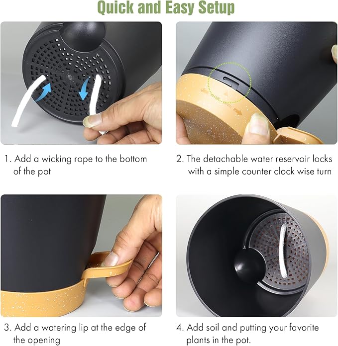 • 【Self-Watering Design】These 4 inch self watering pots for indoor plants are designed with a wick rope that draws water from the reservoir at the bottom. The set of 6 plastic self watering planter provides an optimal air circulation system for plant roots
