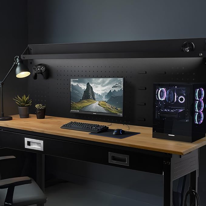 • Pegboard for Organization: A portion of the pegboard is purposely made to hang boxes, allowing you to organize all kinds of small parts. The spacious pegboard has multiple holes, perfect for neatly storing and hanging tools. The pegboard next to the outlets also has a few more rows than other tables, thus not interfering with the outlets. Keep your workspace organized and your tools easily accessible.