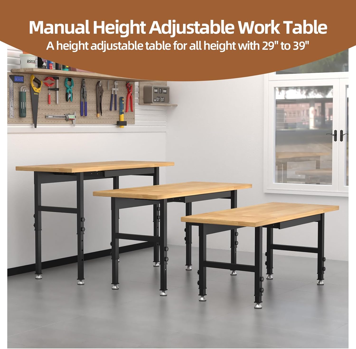• [Adjustable Steel Legs]: This garage workbench features six height settings, adjustable from 29'' to 39''. Find your perfect working height to avoid back or waist pain. Whether you prefer to stand or sit, you can work efficiently.