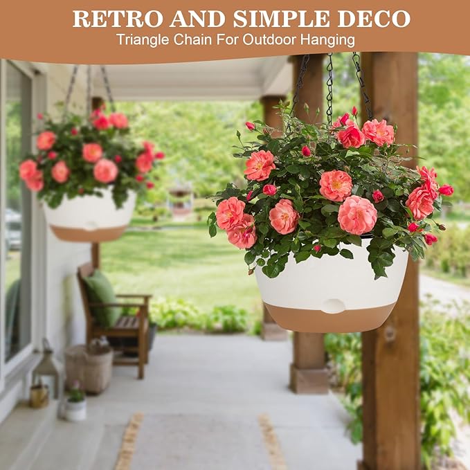 • 【GREAT VALUE PACK】 - Each package includes 3pcs macrame plant hangers and chain plant hangers, 3pcs plastic selfwatering plant pots and saucers 8" / 10" / 10", and 3pcs ceiling and s hooks.