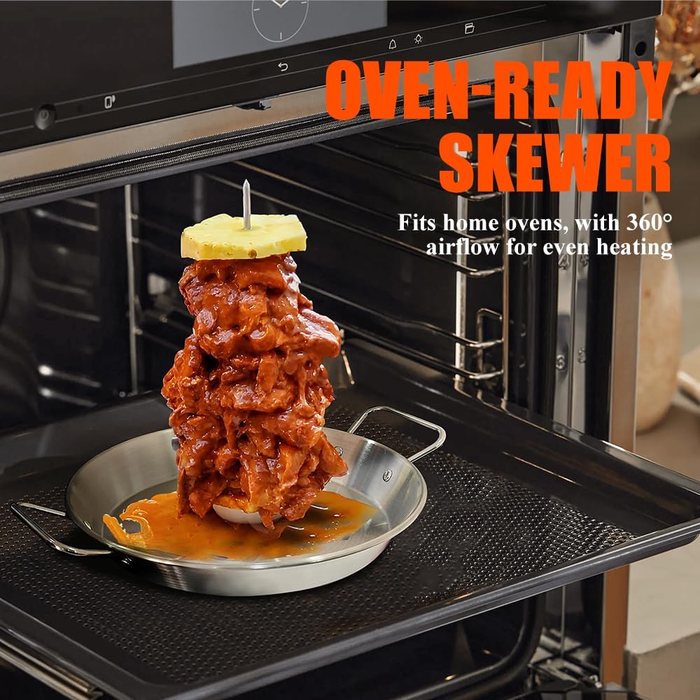• Perfect for Making Tacos Al Pastor, shawarma, and Gyros at Home: With our vertical skewer, you could just use your oven or your regular Grill to make restaurant-style Gyros, Al Pastor, Shawarma, Doner, Kebabs, Whole Chicken, Fish, even Brazilian Churrascaria dishes right on your own grill or oven. No Rotisserie is needed to make the most flavorful meat you've ever tasted