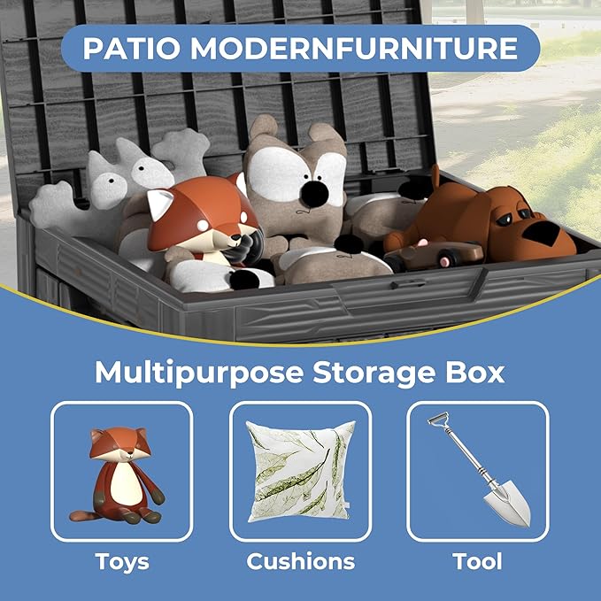 • Versatile Storage with Large Capacity Our deck box offers an impressive storage capacity, perfect for organizing patio cushions, gardening tools, pool accessories, and more. This multipurpose storage solution not only helps keep your outdoor space tidy but also functions as a bench or table. Whether in your backyard, by the pool, or on the patio, this deck box is designed to meet your every need.