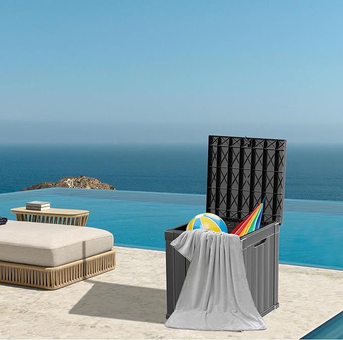 • Wide Range of Use: With a capacity of 100 gallons, this storage box can also be used as a patio seat, storage bench or footstool, whether it's family party supplies, camping equipment, gardening tools.