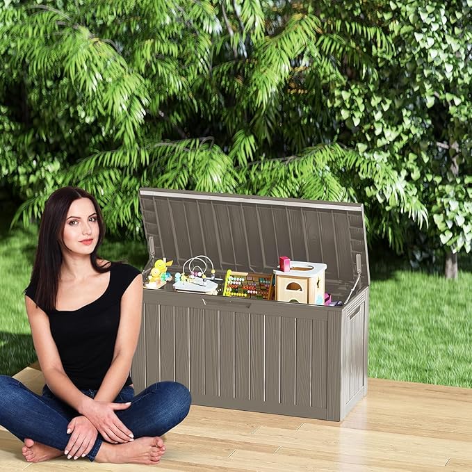 • Wide Range of Use: With a capacity of 100 gallons, this storage box can also be used as a patio seat, storage bench or footstool, whether it's family party supplies, camping equipment, gardening tools.