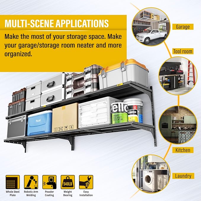 • 540lb Load Tested: Each panel of our Brukid heavy-duty wall shelf has undergone rigorous testing, with a 135-lb weight capacity per panel. This 4-pack (1.3x4ft) units offers a combined total capacity of 540 lbs, making it ideal for heavy-duty storage in garages, workshops, or commercial spaces.