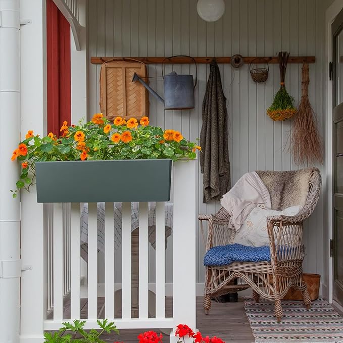 • LARGE RAILING PLANTERS: 15.75x4.7x4.7 inches,perfect for balconies, porches, decks, and fences, this planter box provides a flexible solution for displaying your favorite indoor or outdoor plants.