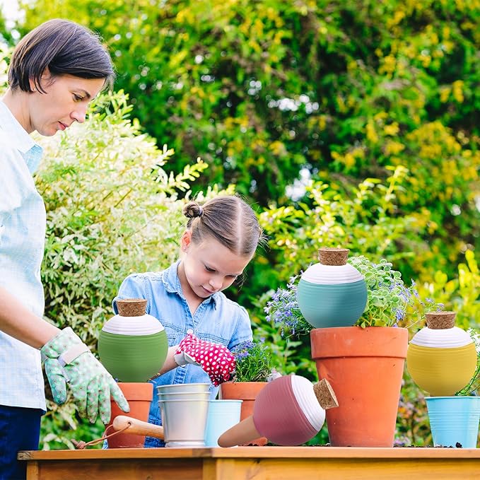 4PCS Plant Watering Globes, Large Terracotta Automatic Watering Stake Devices with Wooden Stopper for Pots, Planters, Indoor, Outdoor