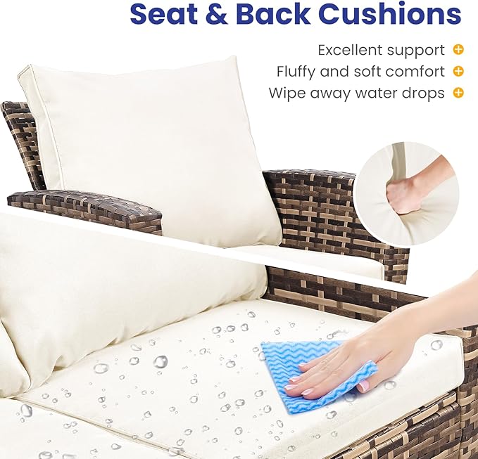 • Durable & Strength Structure:The patio conversation set is made of thick, high-quality rattan material that is weather-resistant, sturdy, and crack-resistant. This patio furniture set also features a powder-coated steel frame as its core for extra strength. Each seat can hold up to 310 lbs