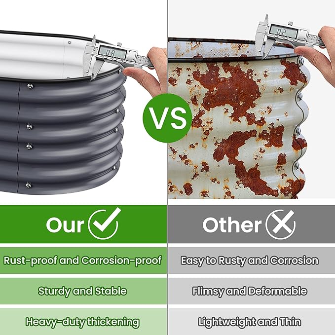 • Safety and Eco Friendly: We use USDA-approved paint that is 100% safe and eco friendly,so you can use our products with peace of mind.Plus,Our garden bed features an oval design that eliminates sharp corners and is covered with heavy-duty rubber edging to prevent injuries.