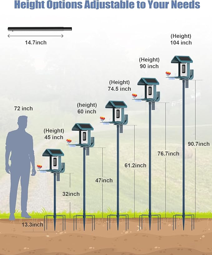• 【Easy Installation】This bird feeding station reaches a total height of 104 inches and comes with 6.5-inch 5-prong base, 5 x connecting pole, and an L-shaped plate. The slip-in connection method allows for easy assembly, similar to stacking building blocks. Installation typically takes 20 to 40 minutes and no need extra tools. This user-friendly design ensures that anyone, from young enthusiasts to seniors, can set it up effortlessly.
