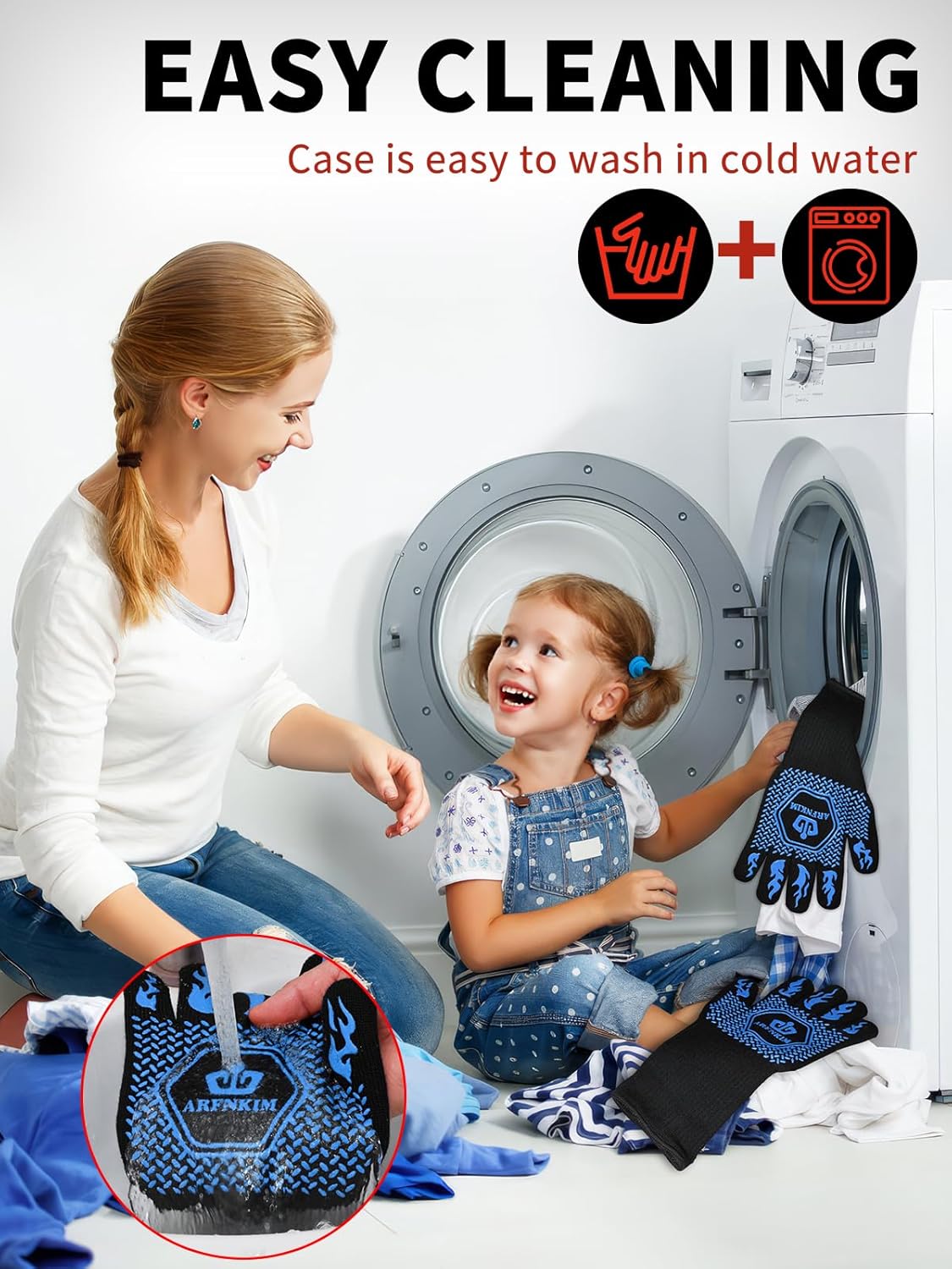 • Easy to Clean: The silicone cooking gloves support hand wash and machine wash. Easily get dirt off from the baking gloves to keep sanitary.
