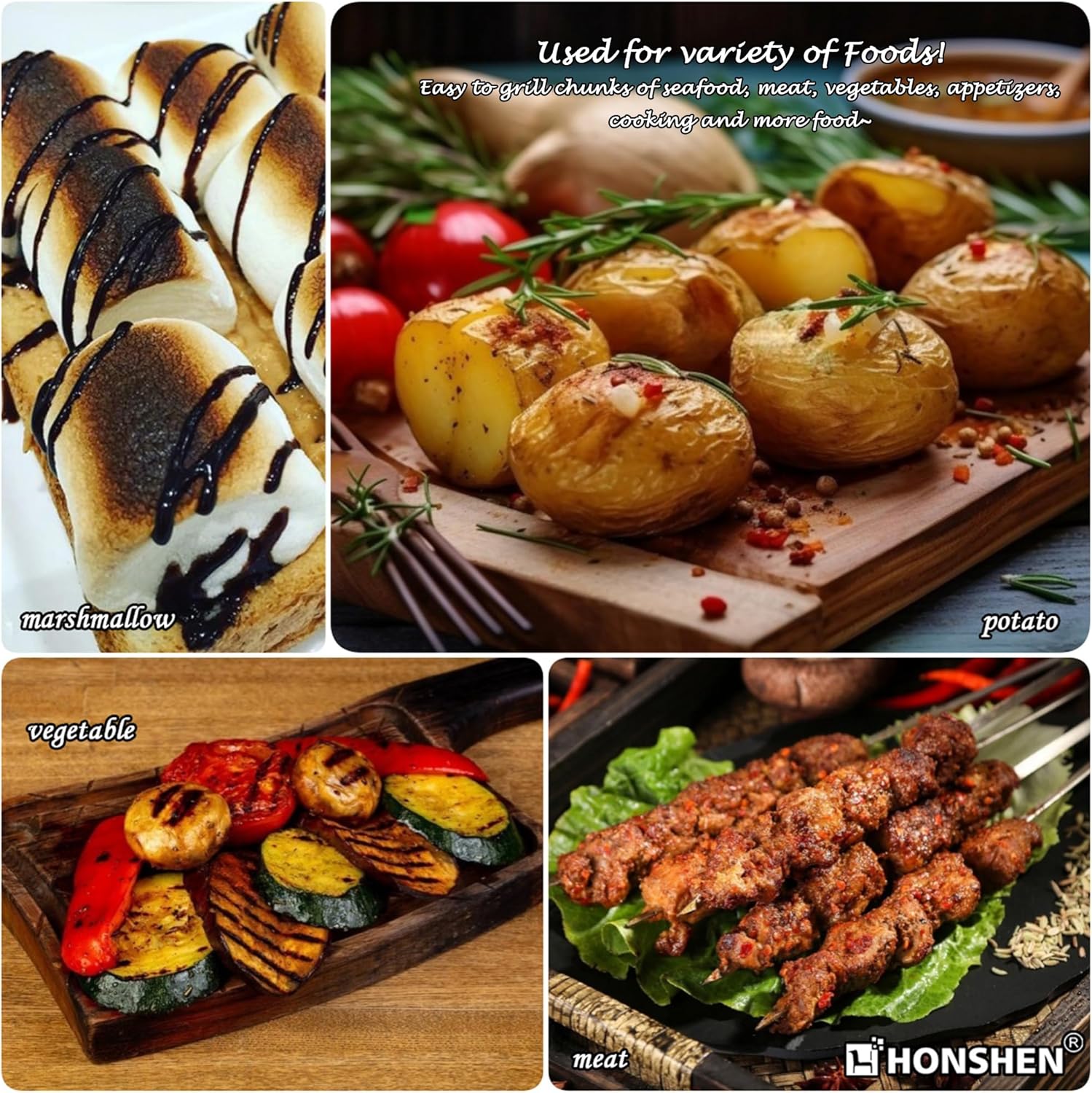 • 17''SUPER LONG LENGTH: Tired of burning your hands and arms on flimsy disposable skewers? Then switch to a longer and safer zero-waste alternative! Its length of 17 inches accommodates 6 to 8 chunks of meat or other food ingredients, ensuring your food cooks - not your hands;