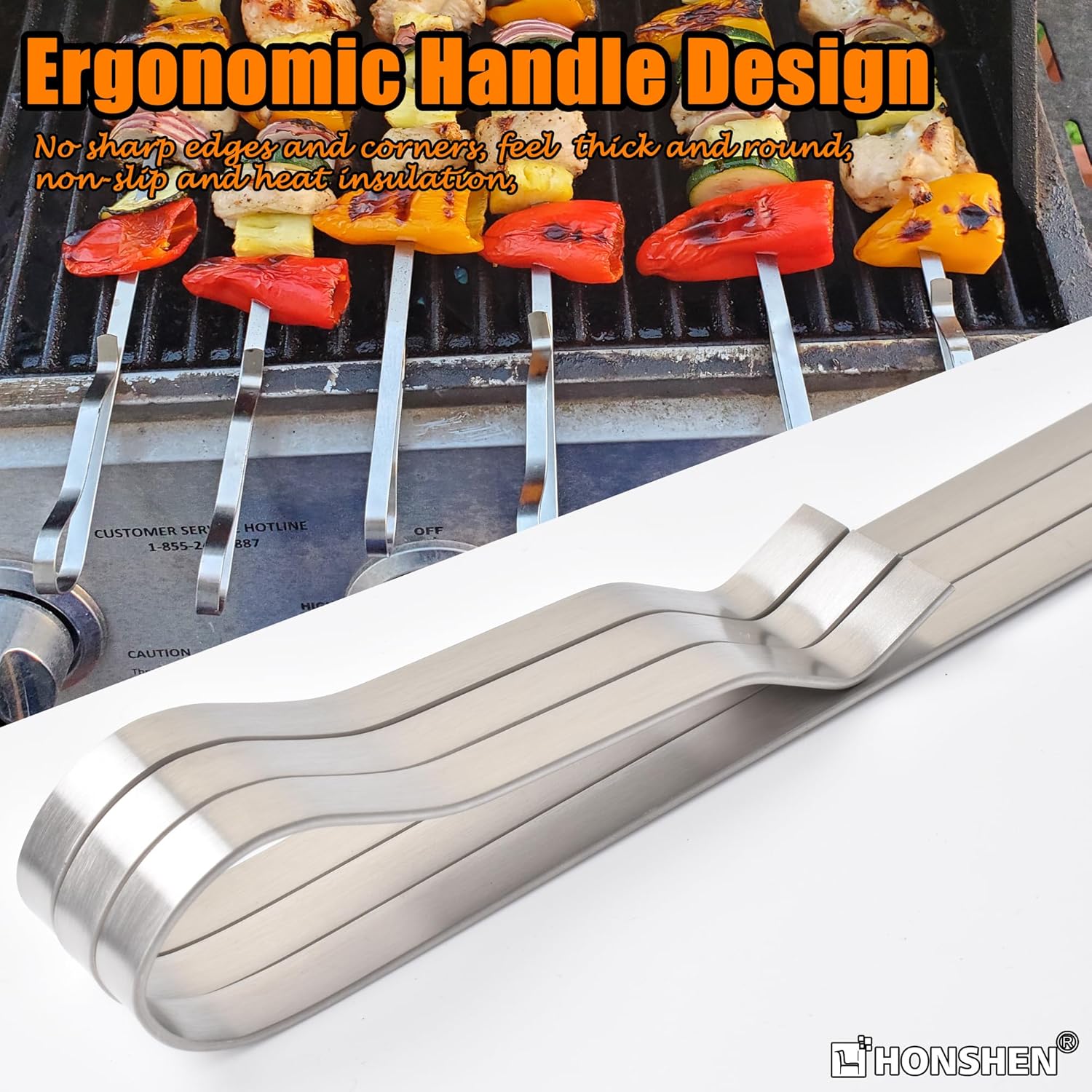 • ONE-PIECE DESIGN: These bbq skewers solid and durable construction holds much more weight than flimsy wooden ones so you can enjoy loading the stick up with meat, veggies or dessert combinations. Thoughtfully designed with a sharp tip that allows you to pierce food easily without any hassle. The main flat body of the skewer make moving and turning food effortless without the hassle of food sliding around on the skewer;