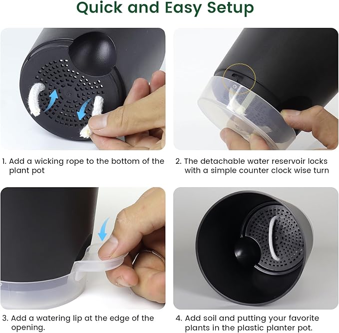 • 【Self-Watering System】These 4 inch small plant pots are designed with a wick rope that automatically deliver water to plant roots, reducing the need for frequent watering. The set of 5 pots for plants are perfect for busy individuals and forgetful gardeners
