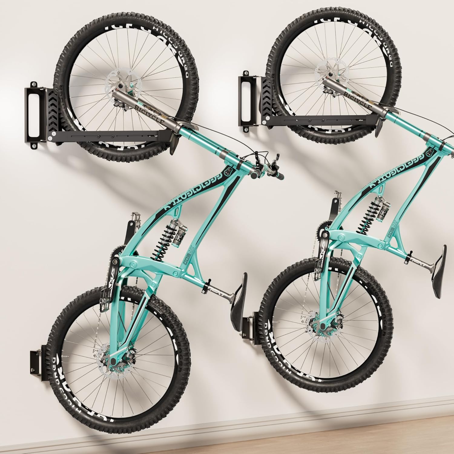 • Sturdy Steel Structure:Made of durable alloy steel, this bike wall mount supports up to 35 kg/77 lbs, providing a sturdy and long-lasting storage solution for your bikes.
