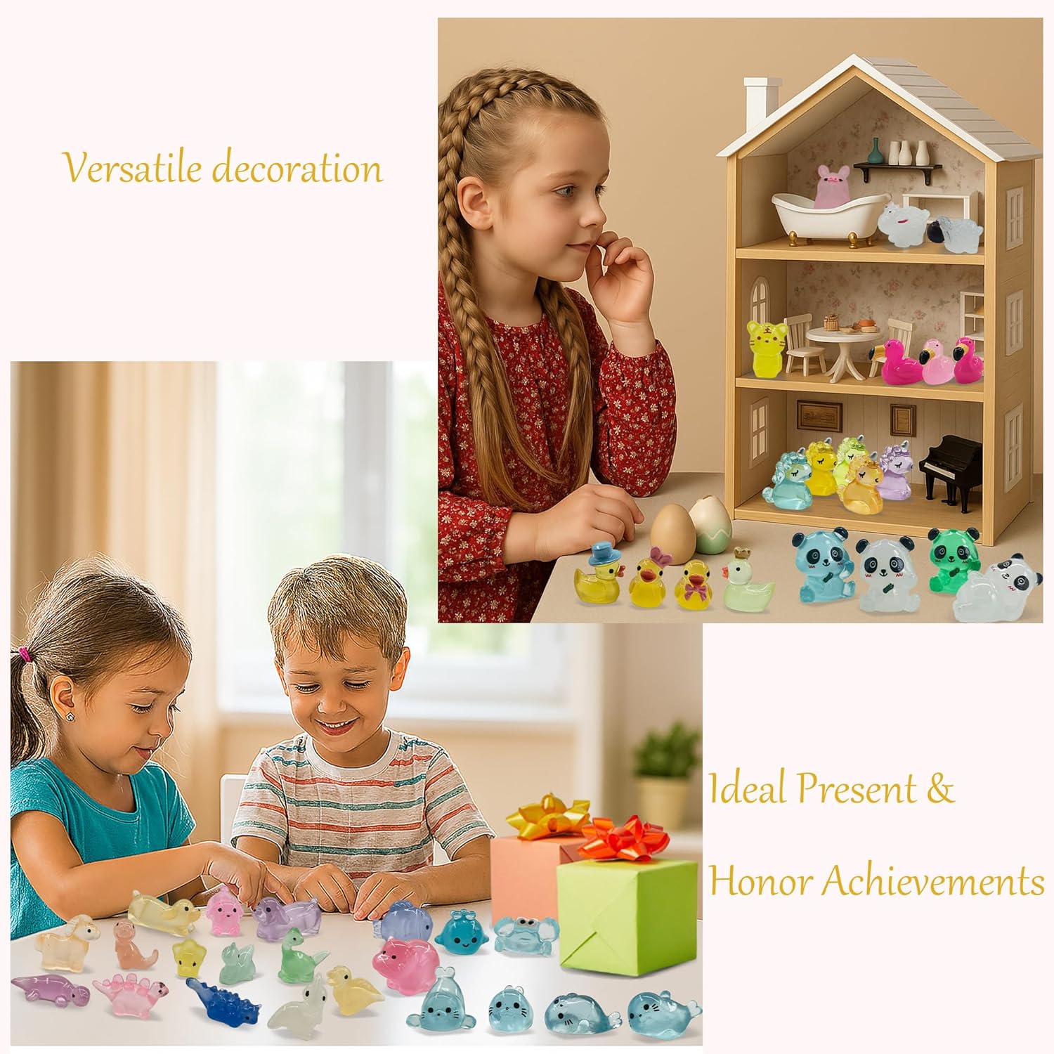 • 160 Pcs Assorted Animals: Includes a variety of miniature resin animal figurines, from tiny creatures to mystical beings, ideal for a wide range of projects. Illuminate your garden with 160 luminous mini resin animals that emit a gentle glow in the dark, adding a magical ambiance to your fairy garden.