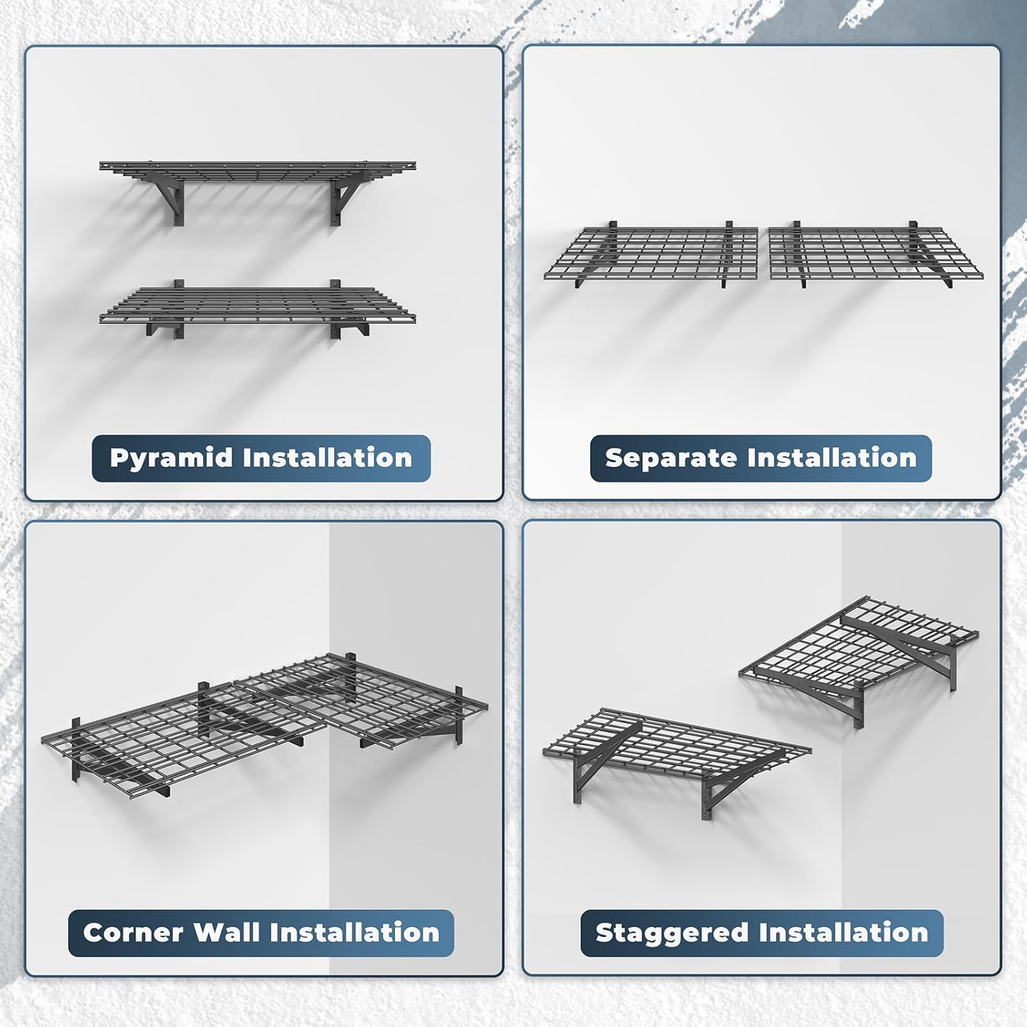• 📦【All-in-One Mesh Storage】- The seamless welded mesh design securely holds tires, sports gear, toolboxes, and plastic bins without sagging. Open-grid airflow prevents dust buildup, while the anti-rust coating ensures durability in humid garage environments.