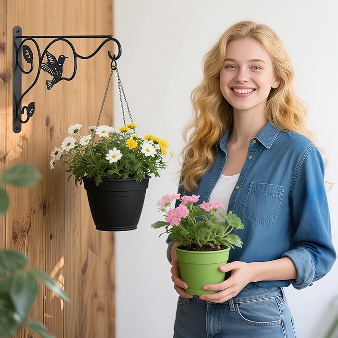 • 【Complete 2-Pack Set with Guarantee】The package includes 2 pcs 12"×9" hanging plant brackets with 4 screws and rubber plugs. Compared to flimsy alternatives, our hooks offer industrial strength + decorative appeal. Love them or contact us for a hassle-free solution!